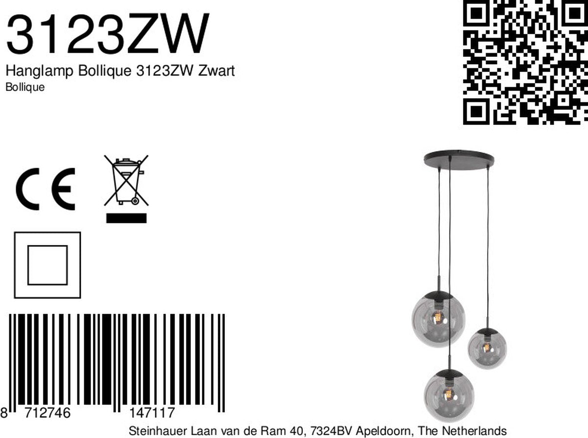Donnez une touche artistique à votre intérieur avec la lampe suspendue noire Bollique. Cette lampe suspendue à trois lumières est dotée de sphères en verre fumé subtilement miroitantes. Les ampoules ont trois tailles : 30 cm, 25 cm et 20 cm. Equipées d'un raccord E27, vous pouvez régler la hauteur des ampoules entre 35 et 200 cm. Avec un diamètre d'environ 35 cm, cette lampe est polyvalente. Suspendez les ampoules courtes pour un plafonnier ou allongez-les pour une lampe vidéo plus petite.