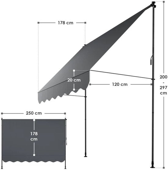 Auvent à pinces Cape Town - 250x120 cm - Gris
