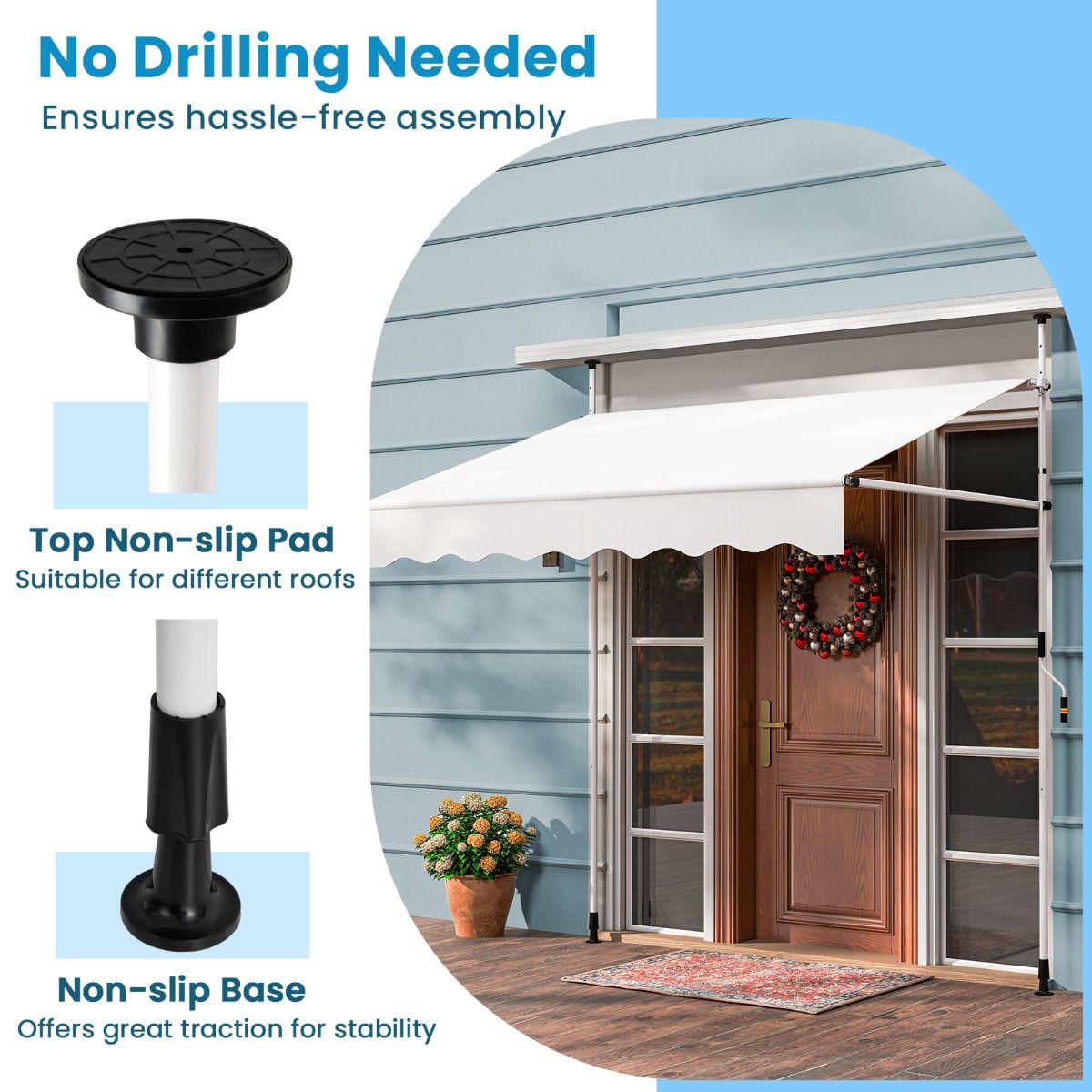 - Hauteur réglable : Grâce aux supports télescopiques, il est facile d'ajuster de 210 cm à 300 cm pour différents passages de portes ou balcons.