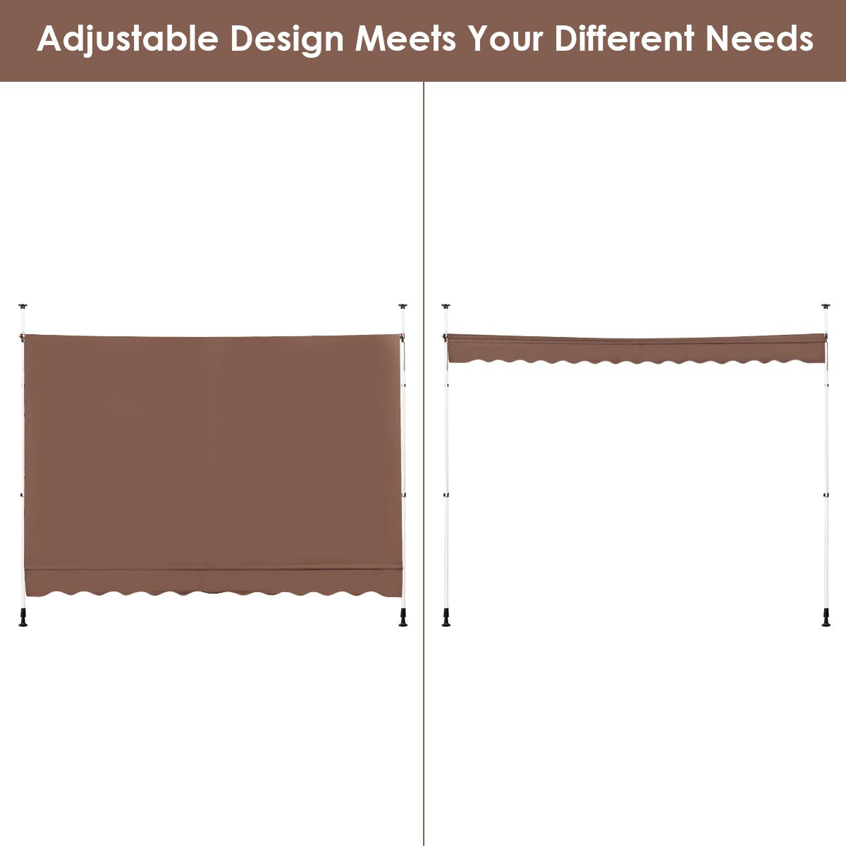 Grâce à son design moderne et à sa couleur marron classique, ce store s'intègre parfaitement à tout environnement extérieur. Utilisez-le sur votre balcon, votre terrasse, près des fenêtres, dans les cours, les vérandas ou dans les établissements de restauration pour un espace extérieur agréable et abrité.