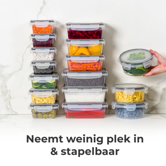 Grâce à l'anneau en silicone dans le couvercle, vous fermez toujours les récipients de manière hermétique et étanche. Vos aliments restent ainsi frais et croustillants jusqu'à deux fois plus longtemps. Ils sont également transparents, ce qui vous permet de voir d'un coup d'œil ce que vous avez et quand vous devez refaire vos courses. Une cuisine bien rangée crée de l'ordre.