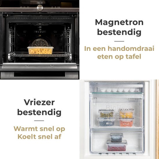 Fabriqué en plastique durable, sans BPA, qui garantit une longue durée de vie et de plaisir. Vous pouvez facilement déplacer vos récipients du congélateur au micro-ondes et du réfrigérateur au congélateur. Le matériau s'adapte rapidement aux changements de température. Vos aliments sont donc rapidement prêts. Savourez votre repas !
