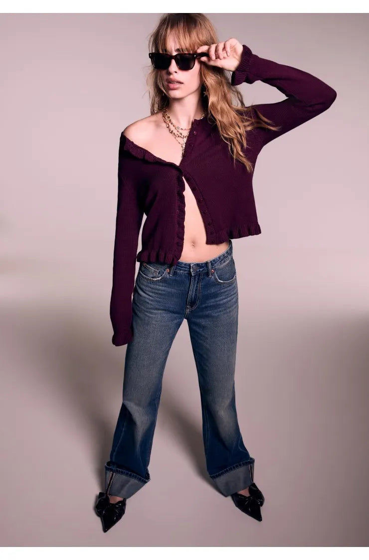 Stradivarius Chaussures à dos plat avec nœud - Bourgogne - Bout pointu - Sangle élastique - Taille 40