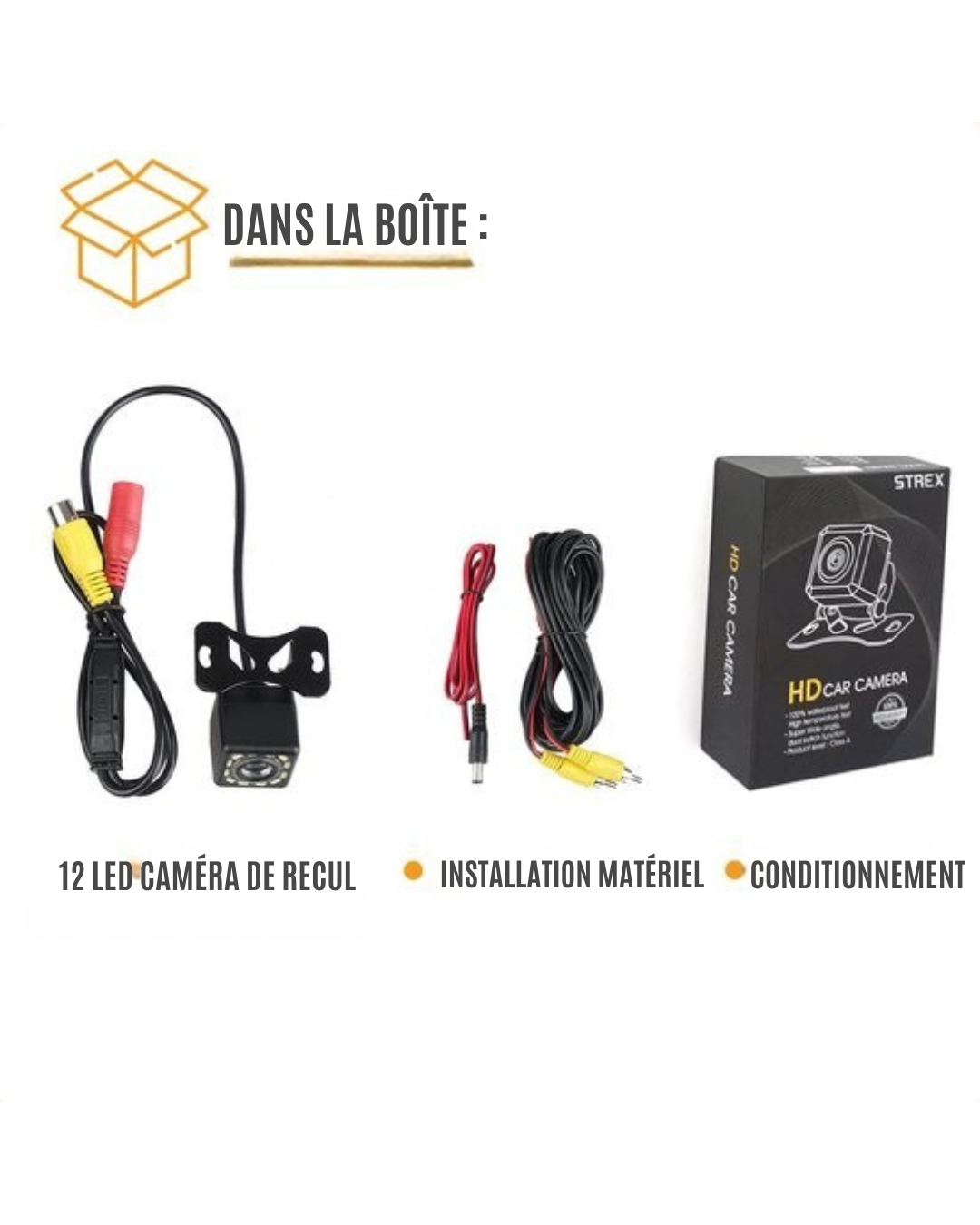 Caméra de recul Strex - RCA universel - Vision nocturne 12 LED - Étanchéité IP68 - voiture - noir