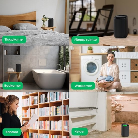 Avec un bouton unique et un design minimaliste, vous pouvez réduire l'humidité en un rien de temps. C'est aussi simple que cela ! Votre nouvel appareil est entièrement contrôlable à l'aide d'un simple bouton. Le déshumidificateur est de petite taille, ce qui vous permet de le placer facilement hors de vue. Vous choisissez une armoire, un bureau, une chambre d'enfant ou une cave ? Ce déshumidificateur multifonctionnel peut être déployé où vous le souhaitez.