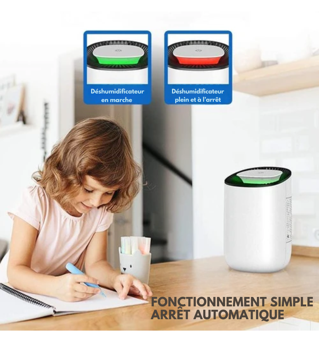 Ce déshumidificateur purificateur est fonctionne à l'aide d'un moteur silencieux et purifie l'air de votre chambre sans que vous vous en rendiez compte. Vous pouvez ainsi le placer dans la chambre de votre bébé ou dans votre chambre à coucher sans qu'il ne perturbe le rythme de vos nuits, et vous pouvez également l'utiliser au bureau.