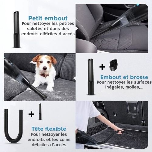 - Comprend 3 accessoires, un filtre HEPA et un câble de chargement