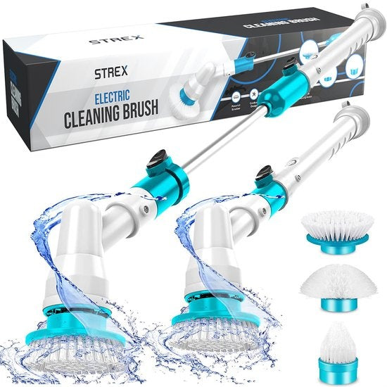 Brosse à récurer électrique Strex - Sans fil - 3 accessoires - Manche télescopique