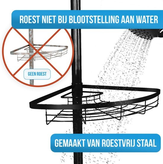 Cette étagère de salle de bain astucieuse est livrée avec 4 étagères de douche et un porte-serviettes supplémentaire, ce qui vous permet de ranger toutes vos affaires en même temps. Chaque étagère peut supporter jusqu'à 5 kg et dispose de deux crochets supplémentaires. Vous pouvez ainsi tout ranger facilement et éviter de renverser quelque chose sous la douche.