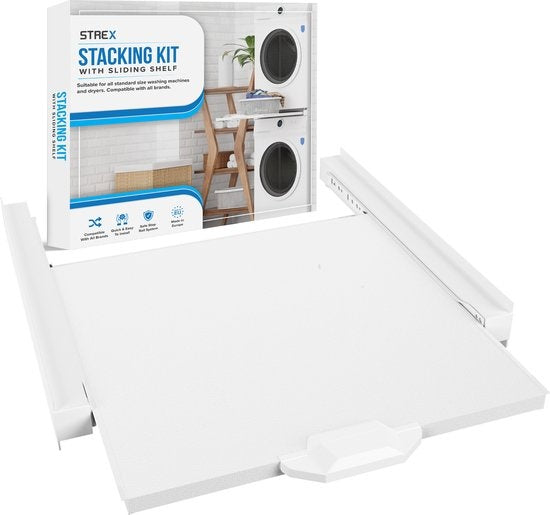 Le kit d'empilage Strex allie stabilité et fonctionnalité. Gagnez de l'espace en empilant facilement et en toute sécurité vos appareils et traitez votre linge plus rapidement grâce au plan de travail extractible. Très pratique pour trier votre linge ou le plier après le séchage. Le séparateur est universel et convient donc à presque tous les lave-linge et sèche-linge.
