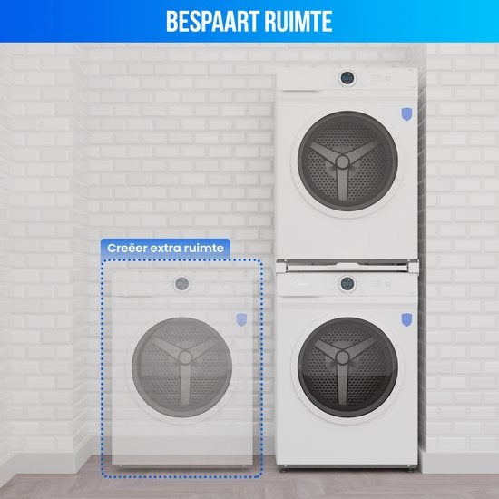 Gagner de la placeSi vous souhaitez gagner de la place dans votre salle de bains, la solution idéale est de placer votre sèche-linge au-dessus de votre machine à laver. Cependant, il est alors important d'installer une entretoise afin que le sèche-linge ne vibre pas contre le lave-linge. Le kit d'empilage Strex permet de réaliser cette opération.