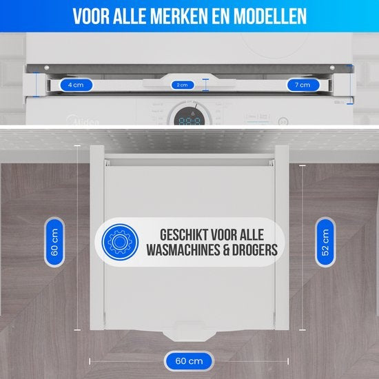 Kit universelD'une taille de 60 x 60 cm, l'entretoise convient à presque toutes les marques de lave-linge et de sèche-linge. Le kit est livré avec tout le matériel nécessaire et même une sangle de tension supplémentaire. Même si votre sèche-linge est plus profond que votre lave-linge, l'entretoise convient.
