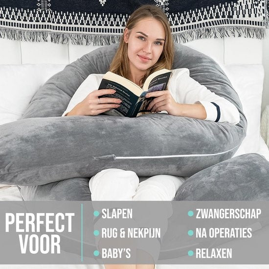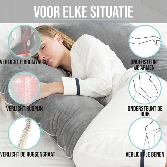 MultifonctionnelVotre nouveau coussin de grossesse n'est pas seulement pratique pendant la grossesse, il vous aide également à la naissance de votre petit. Utilisez le coussin comme support pendant l'allaitement pour soulager la pression et profiter au maximum de ce moment avec votre bébé.