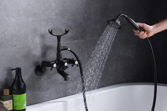 Sumerain - Vintage Wall Mount Freestanding Bath Tap - Matt Black - Hand Shower