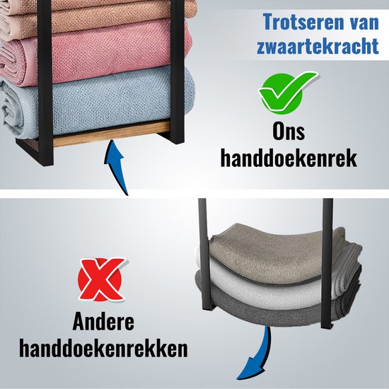 Ce porte-serviettes n'est pas seulement idéal pour les serviettes, mais aussi excellent pour présenter des décorations ou ranger d'autres articles. Qu'il s'agisse de plantes, de désodorisants ou d'un haut-parleur, les étagères en bois robustes offrent de l'espace pour vos objets préférés dans n'importe quelle pièce.
