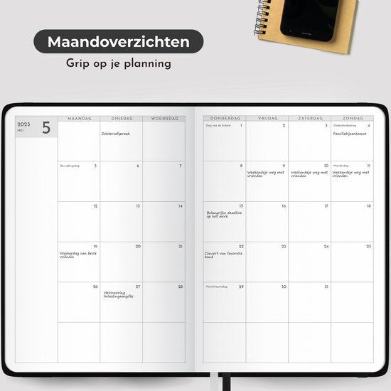 Imaginez que vous commencez chaque matin avec un aperçu clair de vos tâches et rendez-vous, planifiés à la (demi-)heure près. Grâce aux aperçus hebdomadaires de cet agenda, vous pouvez organiser et hiérarchiser vos journées de manière efficace. Vous ne perdrez plus de temps à chercher des notes ou des rendez-vous oubliés. Vous maîtriserez votre temps et serez nettement plus productif.