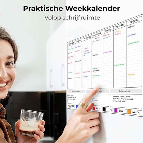 Ce semainier magnétique est la solution parfaite pour tous vos besoins de planification ! Fixez facilement le planificateur à votre tableau blanc ou à votre réfrigérateur et gérez votre emploi du temps (familial). Ensemble complet avec marqueurs et gomme inclus!