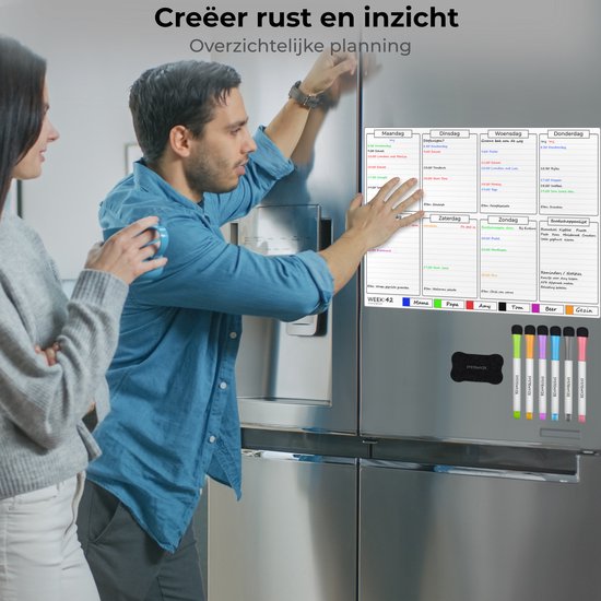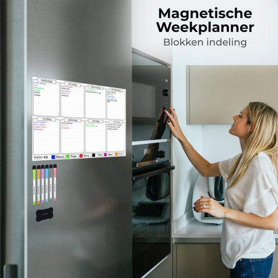 Ce semainier magnétique est le tableau de planification magnétique idéal ! Il suffit de fixer le semainier sur votre tableau blanc ou votre réfrigérateur pour prendre le contrôle de votre planning (familial). Ensemble complet comprenant des marqueurs et une gomme!