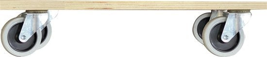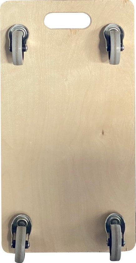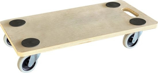 Plateau mobile en MDF. Le plateau à roulettes a une épaisseur de 18 mm. En outre, ce rouleau de meubles est doté d'une poignée pour faciliter le transport. Le rouleau à meubles est équipé de 4 roulettes pivotantes.