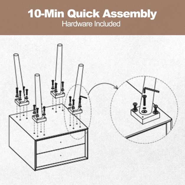 Le montage est particulièrement simple : il suffit de fixer les quatre pieds. Grâce à la surface lisse et imperméable, la table de chevet se nettoie également rapidement avec un chiffon humide.