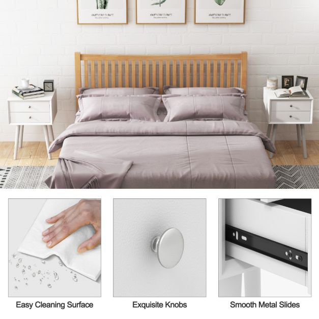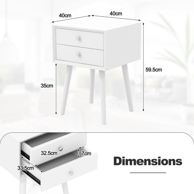 Table de chevet blanche 40x40x59.5 cm - Table d'appoint en bois avec 2 tiroirs et pieds surélevés - Coast