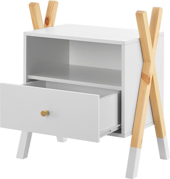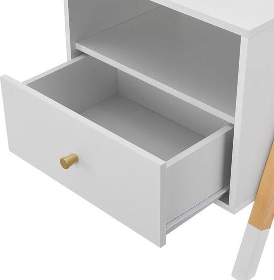 Chevet en bois / Chevet d'enfant Jamie - Blanc / Couleur bois - 1 tiroir