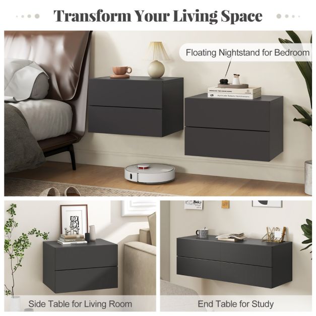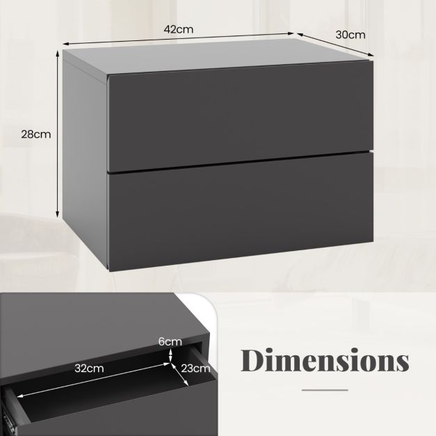 Coast Table de nuit flottante avec 2 tiroirs 42x30x28 cm - Gris - Table de nuit murale moderne