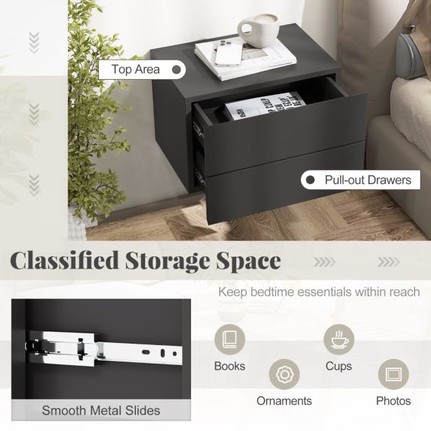 Table de nuit suspendue Coast avec 2 tiroirs - Design moderne pour une chambre à coucher bien rangée