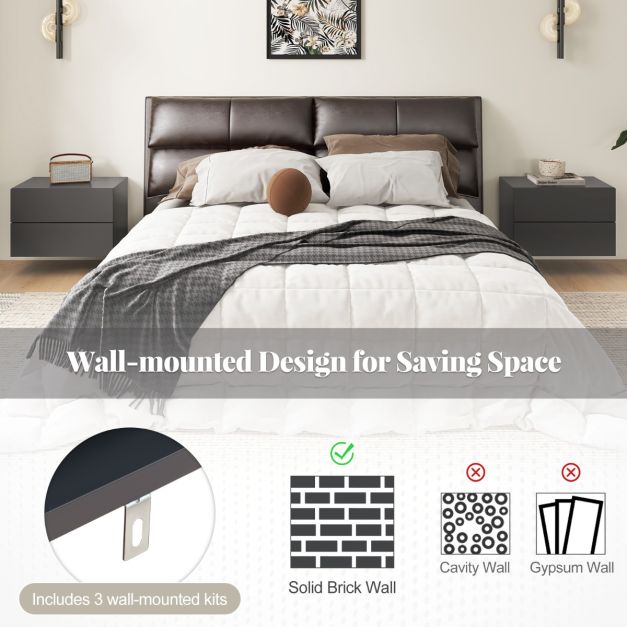 La table de chevet est livrée avec trois ensembles de fixation murale de haute qualité, conçus pour une fixation stable et sûre sur un mur solide. Ainsi, vous profiterez d'un meuble fiable qui n'est pas seulement esthétique, mais qui se fixe également en toute sécurité.