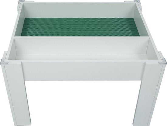 Une table de construction polyvalente et conviviale, parfaite pour les blocs Lego, avec beaucoup d'espace de rangement pour les blocs de construction. Cette table est livrée avec des planches de construction en vrac, idéales pour les Lego. Les panneaux de construction peuvent être placés dans la table en vrac ou de manière fixe, selon vos préférences. Cette table de jeu ou d'activité convient également à d'autres activités de construction telles que les blocs ou les rails de train. Une table de jeu attrayante et pratique qui contribue à l'ordre de la salle de jeu, de la chambre ou du salon, tout en offrant des heures d'amusement. Dimensions : 66 cm de large, 83 cm de profondeur et 51 cm de haut jusqu'au bord. Livrée en kit avec toutes les pièces nécessaires et les instructions de montage.