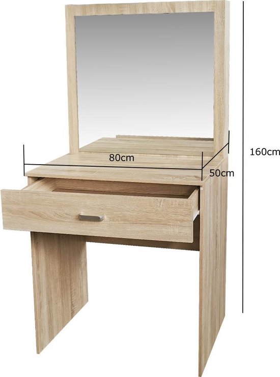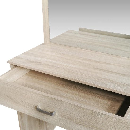 Coiffeuse Marron Clair avec Miroir et Grand Tiroir de Rangement