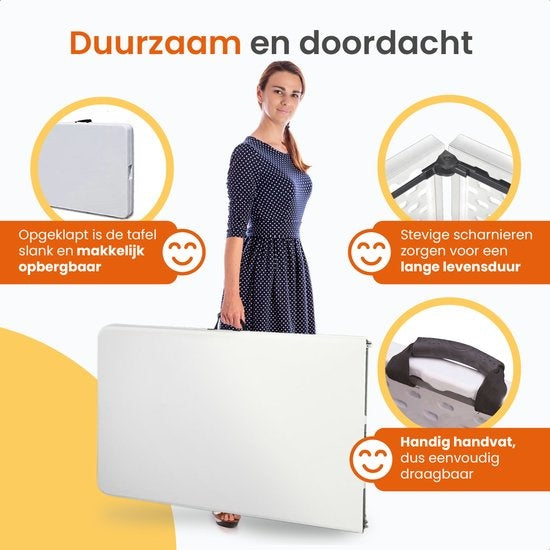 - Facile à transporter - Grâce à la poignée intégrée, la table pliante est très facile à emporter avec vous !