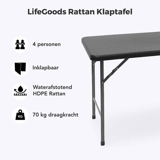 LifeGoods Table pliante - 120 cm - Table de camping - 4 personnes - Table pliante - Noir