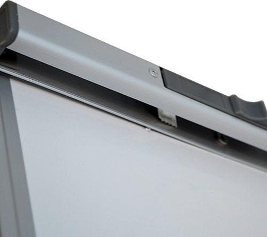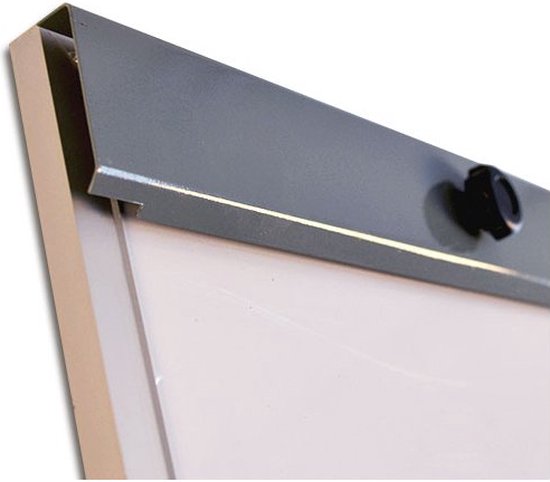 La surface d'écriture de ce tableau de conférence est inscriptible, peut accueillir des aimants et est entourée d'un bord métallique robuste. Cela permet également d'utiliser le flipchart comme tableau blanc lorsqu'il n'y a pas de papier attaché.