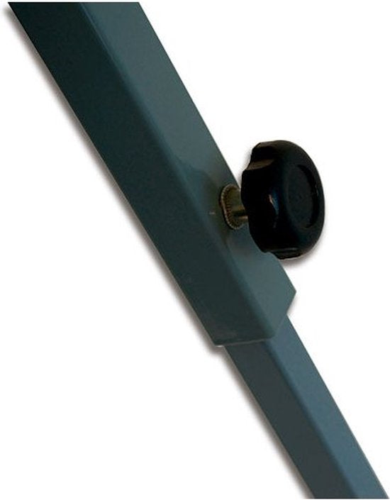 La fonction de tableau blanc ne doit cependant pas être utilisée comme une alternative à la fixation d'un nouveau papier. En effet, le tableau est réglable à presque n'importe quelle hauteur (avec une capacité d'extension allant jusqu'à 190 cm), ce qui permet d'atteindre facilement le sommet. Le papier peut être fixé rapidement et sans effort à l'aide des deux boutons ronds gris.