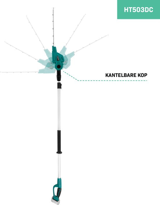 Grâce à son manche télescopique réglable en continu et à sa tête inclinable, vous pouvez atteindre jusqu’à 3 mètres de hauteur. La lame de 40 cm, réglable sur 6 positions différentes, vous permet de travailler sous l’angle idéal et de façonner rapidement toute la largeur de vos haies.