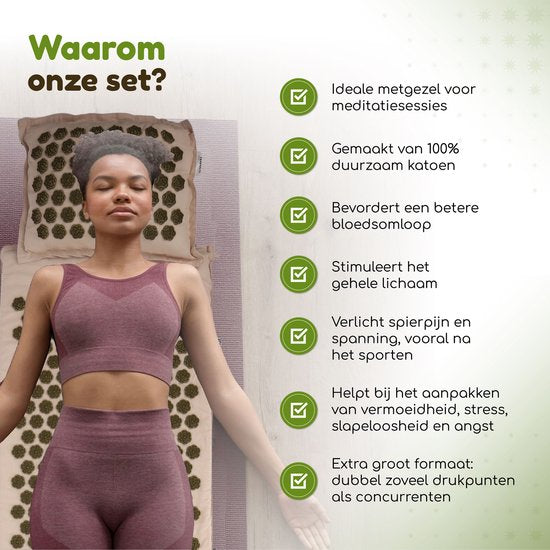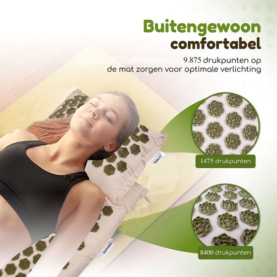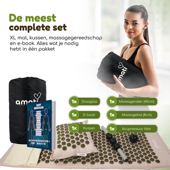 Découvrez l'effet curatif et stimulant d'un ensemble d'acupression Amati. Les 14 883 points d'acupression au total procurent un effet sur tout le corps. Vous ressentirez une sensation de sérénité dans tout votre corps grâce à l'Amati qui stimule la circulation sanguine et les nerfs. Les tapis à pointes Amati intensifient l'expérience et les résultats des exercices actifs tels que la méditation et le yoga. De plus, vous pouvez vous détendre merveilleusement sur ce tapis shakti. Amati est une aide très efficace pour des problèmes tels que l'anxiété, l'insomnie et le manque d'énergie. Seulement 15 à 30 minutes par jour procurent un effet relaxant et curatif ; aussi bien physiquement que mentalement.
