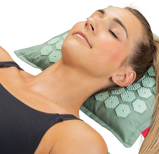 Tapis d'ongles Northwall avec oreiller et sac de transport - Tapis d'acupression avec oreiller pour les ongles - Lit pour les ongles - Acupuncture - Méditation - Massage Shakti - Vert