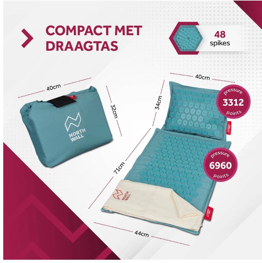 Le tapis à ongles compte 6960 points de pression, tandis que le coussin en compte 3312. Ce tapis offre un effet antibactérien. Découvrez les avantages de la technologie de massage shakti et faites l'expérience d'une relaxation et d'une récupération profondes. Choisissez le tapis d'acupression Northwall dès aujourd'hui et accordez à votre corps l'attention qu'il mérite.