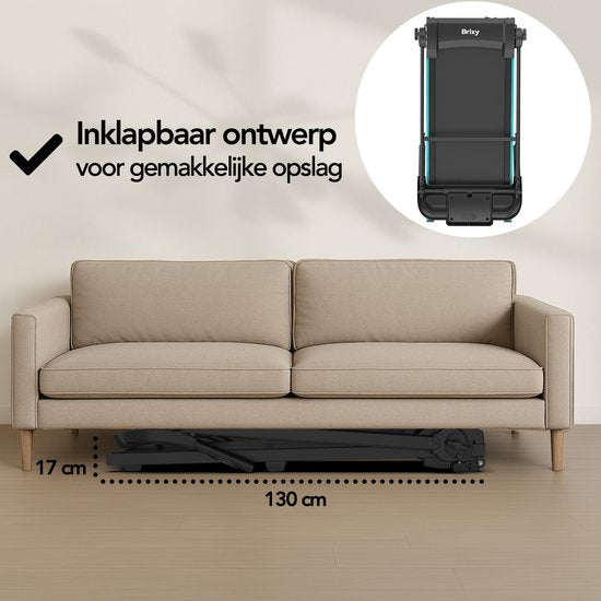 Brixy Treadmill - Pliable - Tapis de marche - 12 programmes - Support pour tablette - Fonction d'inclinaison - Tapis de course - 1-12km/h