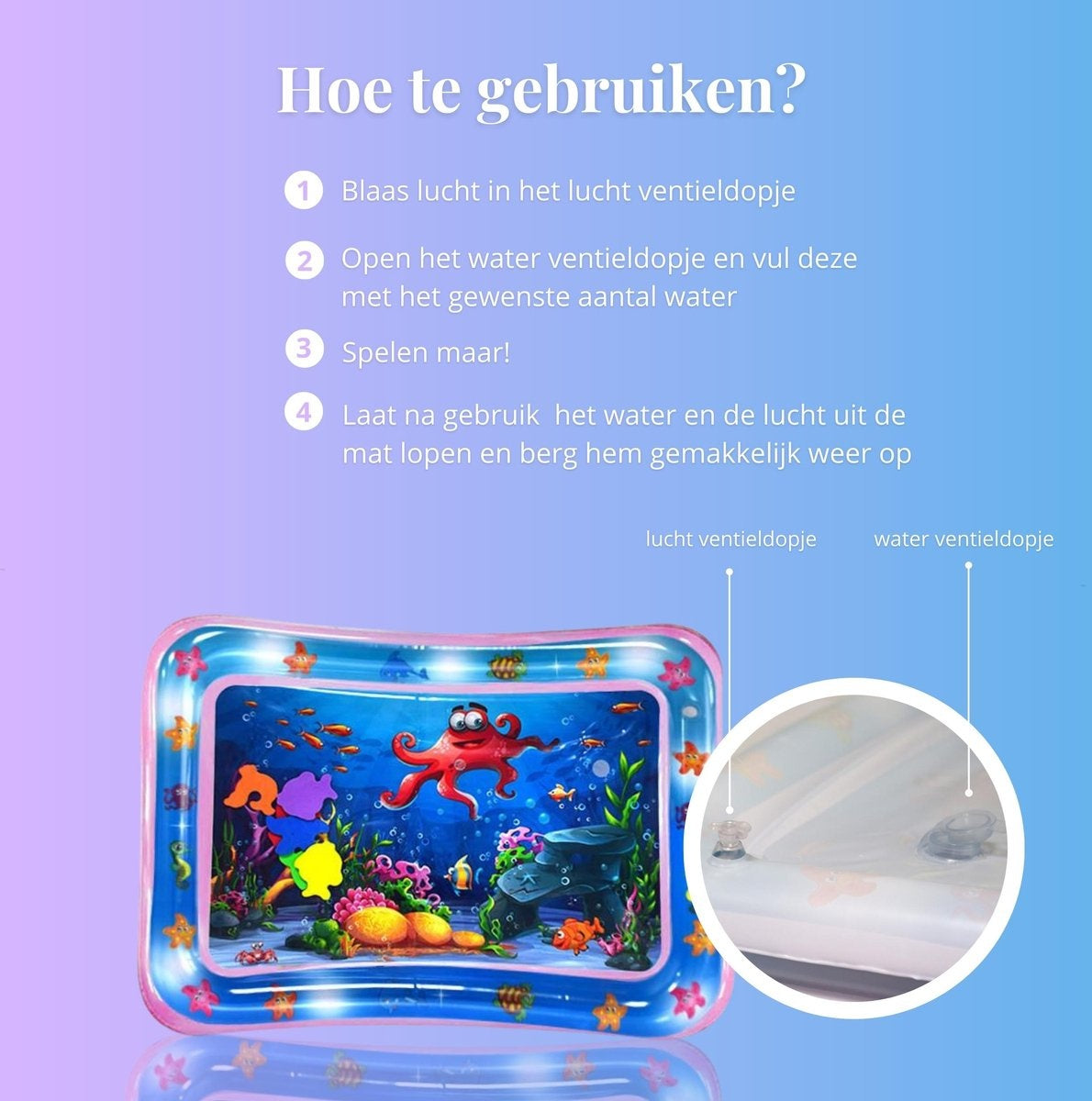 En utilisant notre tapis de jeu aquatique, vous vous assurez que votre enfant commence à exercer son corps et son esprit dès son plus jeune âge. Ce tapis de jeu le fait de manière ludique. Le monde sous-marin fascinera votre enfant. Il pourra ainsi s'amuser sainement pendant des heures. Le tapis est fabriqué en PVC durable et en matériaux sans BPA. Il est sûr et fiable. Votre bébé peut s'amuser sur le tapis sans faire de dégâts !