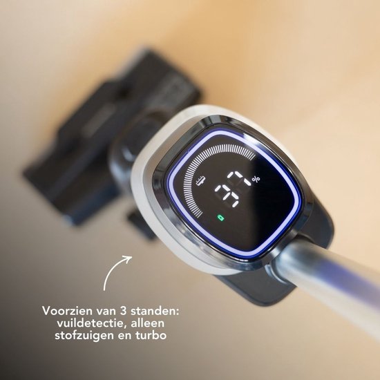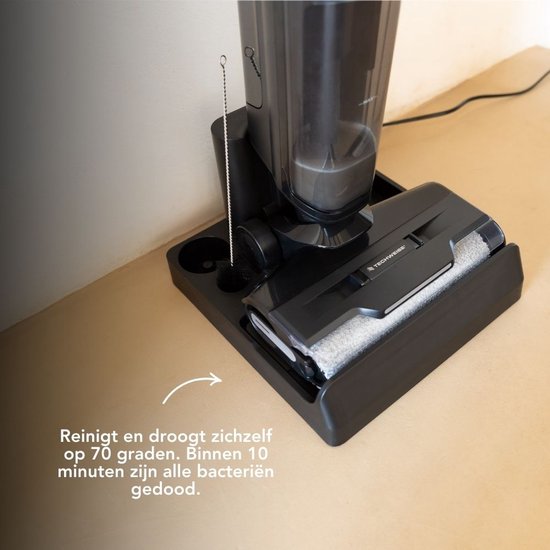 Passer l'aspirateur, passer la serpillière et attendre que le sol sèche ? Désormais, faites tout en één mouvement. Cet aspirateur à franges aspire álle, passe la serpillière et la sèche aussitôt. Tout cela en un seul mouvement.
