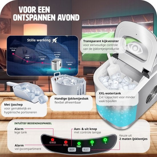 Installez-la dans votre maison, dans votre bateau ou au bureau. Dans toutes les situations, vous aurez des glaçons en stock.
