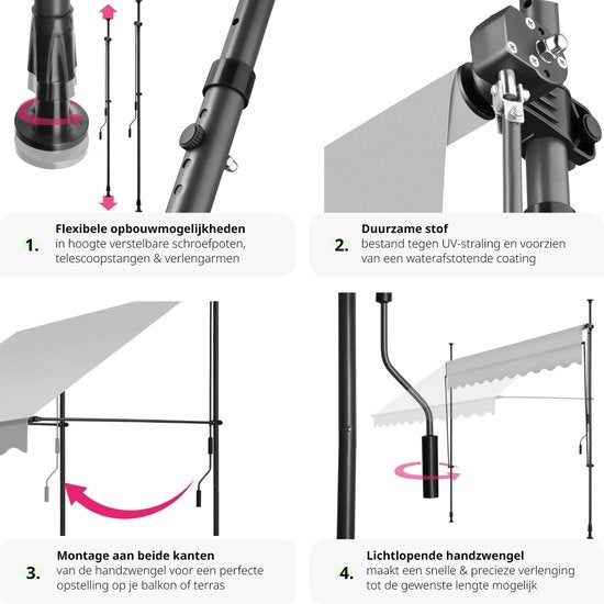 Avec manivelle résistante aux UV Réglable en hauteur Hydrofuge Montage facile