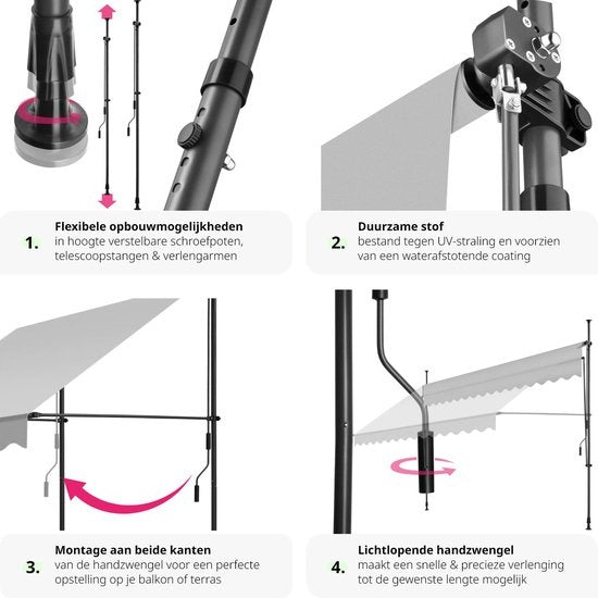 Avec manivelle Résistant aux rayons UV Réglable en hauteur Hydrofuge Montage facile