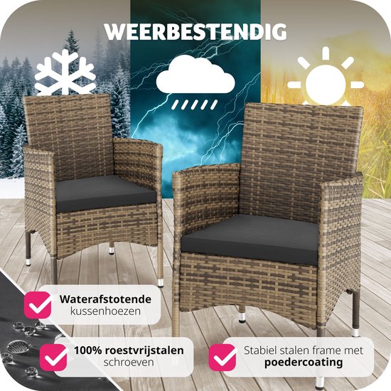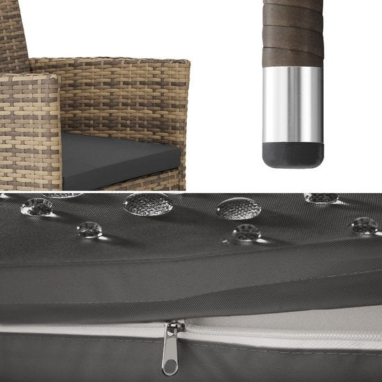 tectake® - Lot de 2 chaises de jardin en osier - incl. 2 sets de housses de coussin - naturel - 404552 - poly-rattan