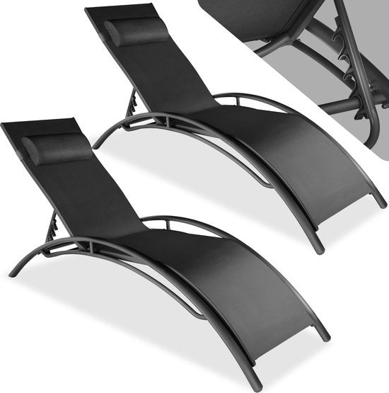 Tectake® Jeu de 2 chaises longues en aluminium - Chaises de jardin résistantes aux intempéries - Dossier réglable - Coussin de tête inclus