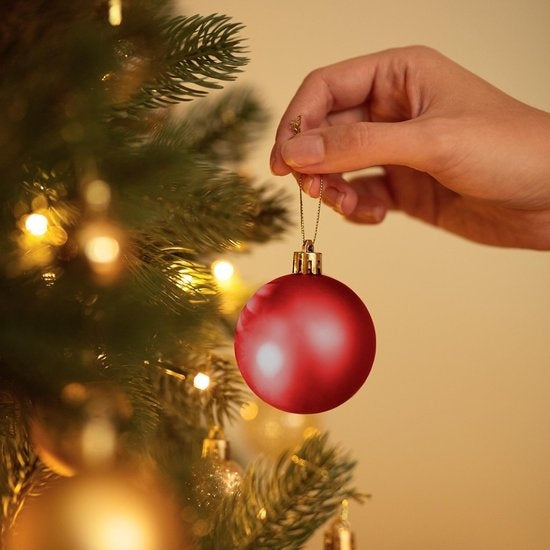 Le lot de 86 boules rouges de tectake crée une belle atmosphère de fête. Les boules ont trois tailles différentes et une surface mate, brillante ou luisante. Un long collier de perles et une étoile à cinq branches pour le sommet sont également inclus. L'ensemble garantit la variété sur les branches tout en donnant à l'ensemble de l'arbre une tenue uniforme et d'une beauté éclatante. Malgré leur faible poids, les boules sont très robustes et incassables.