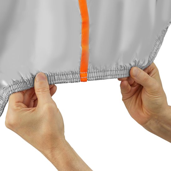 Avec cette housse imperméable de protection contre la grêle, y compris le sac de rangement, votre voiture est entièrement protégée contre toutes les conditions météorologiques. Une couche de mousse ferme sur le dessus absorbe efficacement l'impact de la grêle, des petites branches et ainsi de suite, tandis que les aérations empêchent la formation de moisissures. Grâce à l'ourlet élastique, la housse s'adapte parfaitement à la voiture et la sangle de tension réglable offre une stabilité supplémentaire. Les réflecteurs et le liseré orange rendent l'ensemble du garage très visible, même la nuit - cette housse offre une excellente protection dans toutes les conditions !