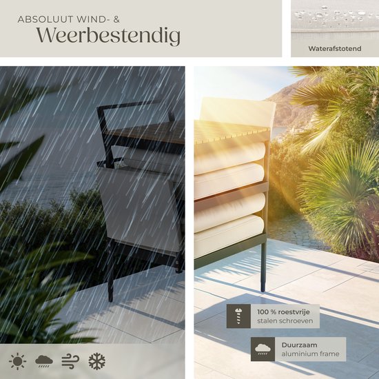 - Coussins d'assise épais, coussins épais d'assise, de dossier et latéraux avec housses déperlantes, amovibles et lavables